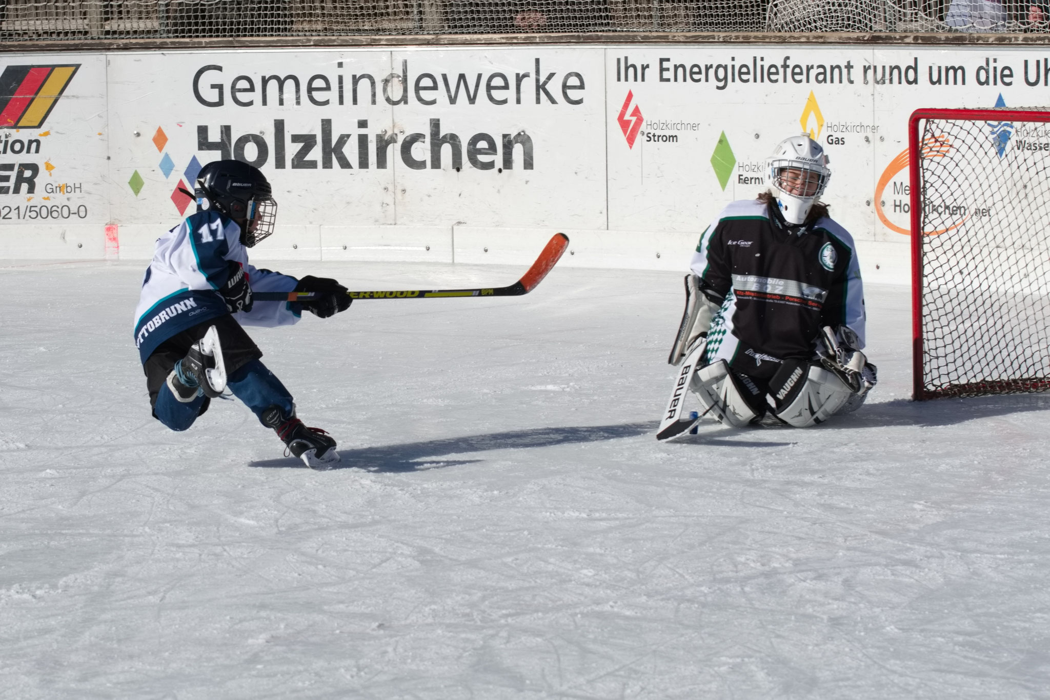 Angespornt von der Niederlage im Mitteldrittel kamen unser Mädchen und unsere Jungs wieder hochmotiviert auf das Eis zu Drittel Nummer drei. Konzentrierte und geduldige Angriffe bei sicherer Abwehrarbeit brachten die Dominanz aus dem ersten Drittel zurück. Vier Tore konnten erzielt werden, wobei noch in den allerletzten Sekunden des Drittels der 4-0 Shutout von den Holzkirchnern verhindert werden konnte.