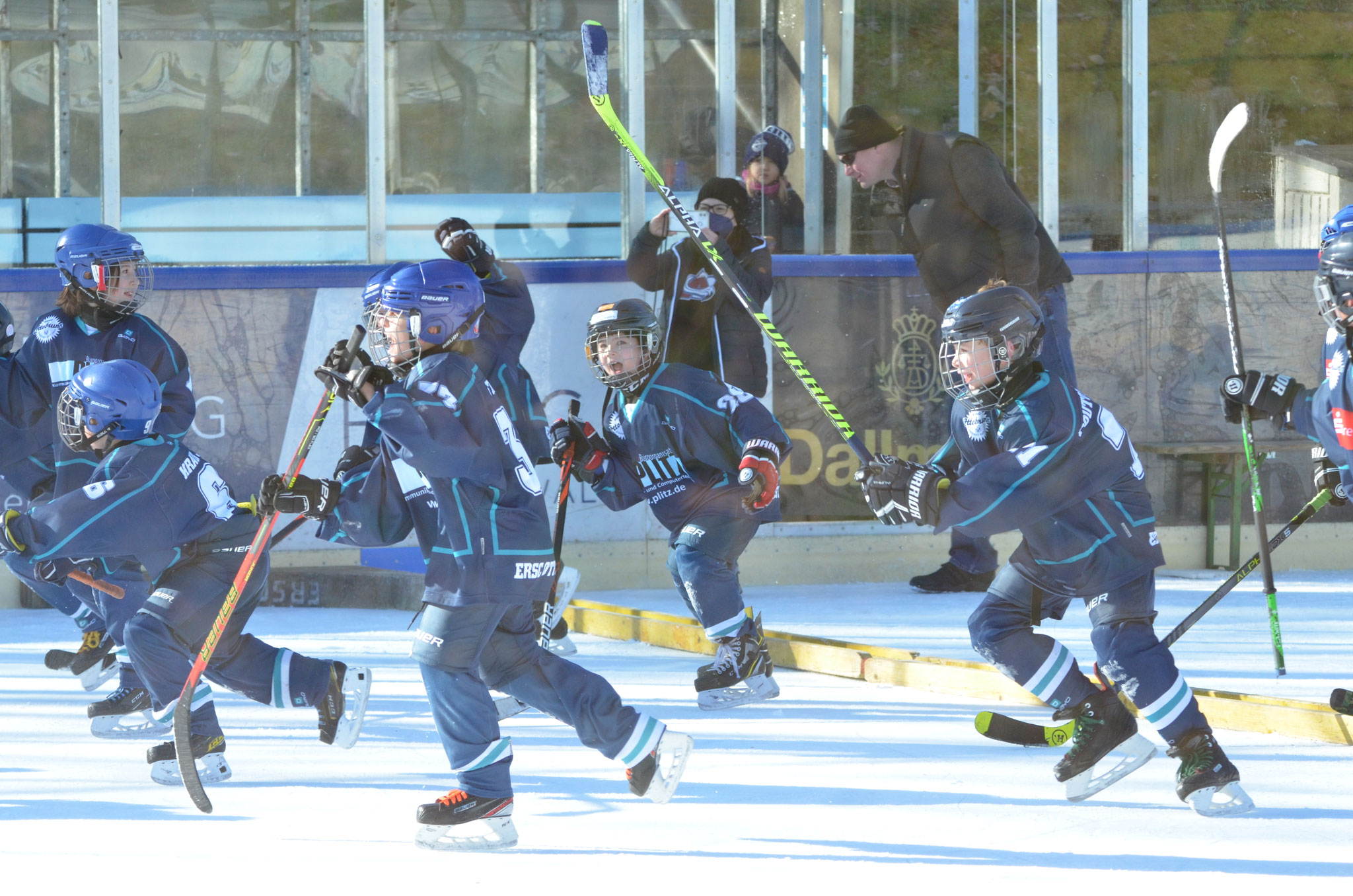 Zu dieser großartigen Ergebnis heute haben nicht nur unsere vielen Torschützen beigetragen, sondern wirklich alle Kinder aus dem Team. Diejenigen, die die Pucks überall immer und immer wieder rausgefischt haben. Diejenigen, die den Gegnern die Pucks mitten im Lauf wieder abgejagt haben. Diejenigen, die die Pucks von unseren Toren fern gehalten haben und damit auch tolle Verteidigungstechniken gezeigt haben. Und zu guter Letzt natürlich auch unsere beiden Goalies, die wieder stark gespielt und den Kasten sauber gehalten haben.
