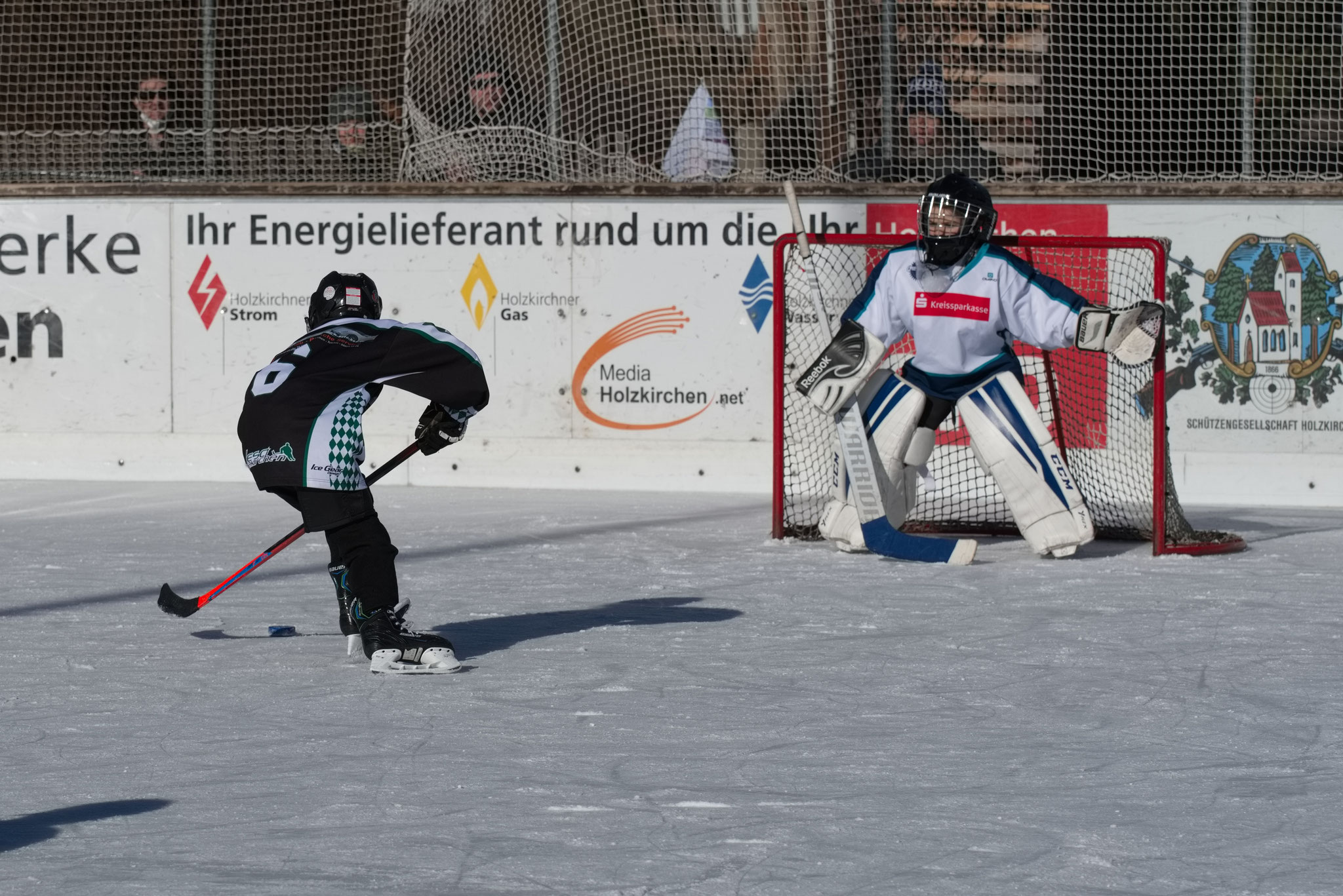 Beim letzten Zusammentreffen beider Mannschaften im November, konnten die Gäste aus Holzkirchen das zweite Drittel noch für sich entscheiden. So traten diese jetzt angespornt aufs Eis und das Spiel nahm weiter Tempo auf. Die Igel stellten sich jedoch gekonnt der Herausforderung. Vor allem unser Goalie war hellwach. Dieser zeigte heute erneut eine starke Leistung und wehrte geschickt alle Torschüsse im zweiten Drittel ab. So gingen beide Teams mit 0:0 in die letzte Pause.