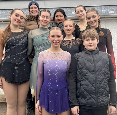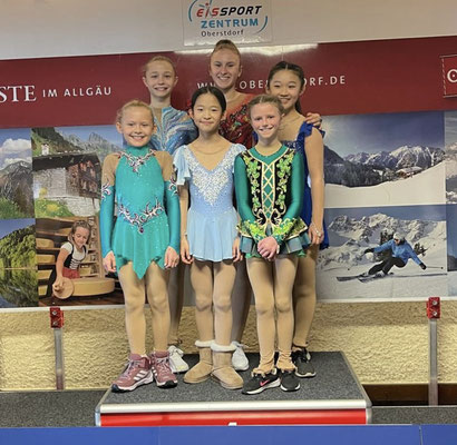 2. Platz: Mila Schultz (Elemente 1f), Emma Xu (Freiläufer), Rebecca Rusu (Nachwuchs A), Alisa Anufrieva (Sternschnuppen B), Nina Kaufmann (Pre Young Adult 1), Anna Buschmann (Pre Young Adult 3), Kayo Weinschenk (Adult Silver)