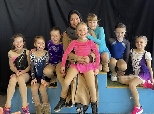 2. Platz: Mila Schultz (Elemente 1f), Emma Xu (Freiläufer), Rebecca Rusu (Nachwuchs A), Alisa Anufrieva (Sternschnuppen B), Nina Kaufmann (Pre Young Adult 1), Anna Buschmann (Pre Young Adult 3), Kayo Weinschenk (Adult Silver)