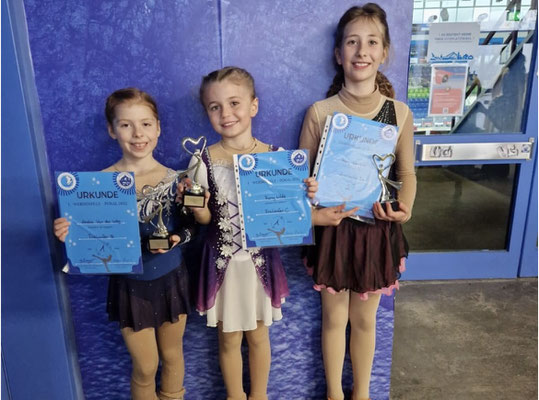 6. Platz: Annika Ellersdorfer (Kunstläufer B), Anna Wallek (Kunstläufer C), Alisa Anufrieva (Sternschnuppen B a)